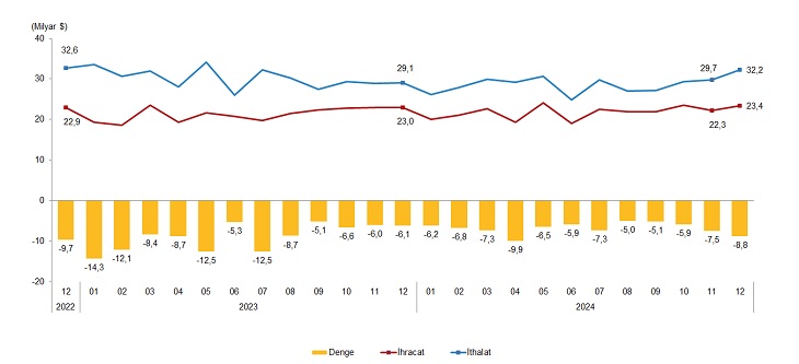 İhracat, ithalat ve dış ticaret dengesi, Aralık 2024