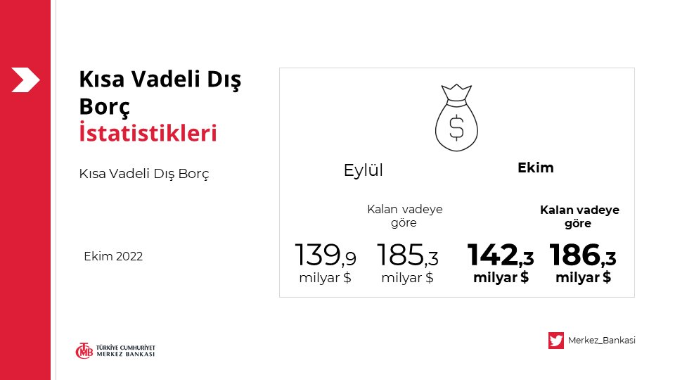 TCMB Ekim 2022 ayına ait kısa vadeli dış borç istatistikleri gelişmelerini açıklamıştır.